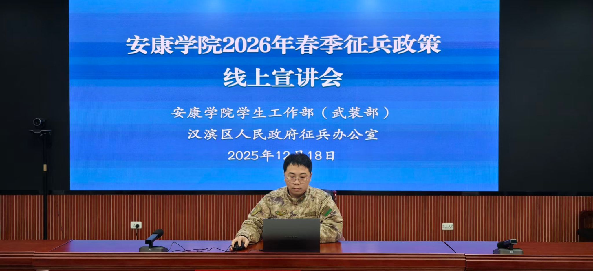 为积极响应国家征兵号召,扎实推进2026年度大学生应征入伍工作,并引导毕业生拓宽发展路径,12月18日晚,学工部(武装部)特邀汉滨区武装部军事科科长王斯峰,面向全校学生在线举办了2026年度国防教育暨大学生征兵政策宣讲会。活动通过“雨课堂”直播进行,共吸引700余名2026届毕业生及有意参军学生参与。